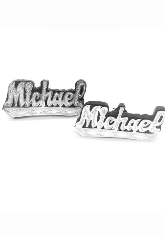 Details About Personalaized Sterling Silver Studs Double 3d Plate Name Earrings Oe2