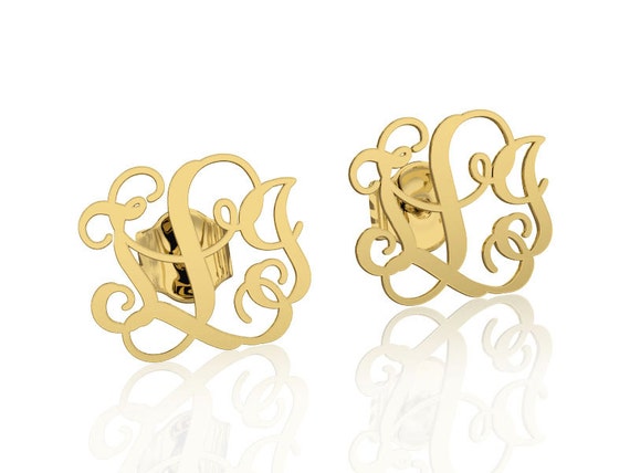 14k Gold Monogram Earrings Personalized Name Earrings Letter Earrings Initial Earring Nameplate Earring Stud Earrings Silver