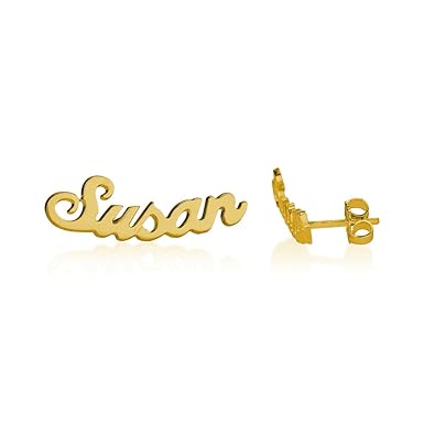 14k Gold Overlay Stud Name Earrings Nikfine