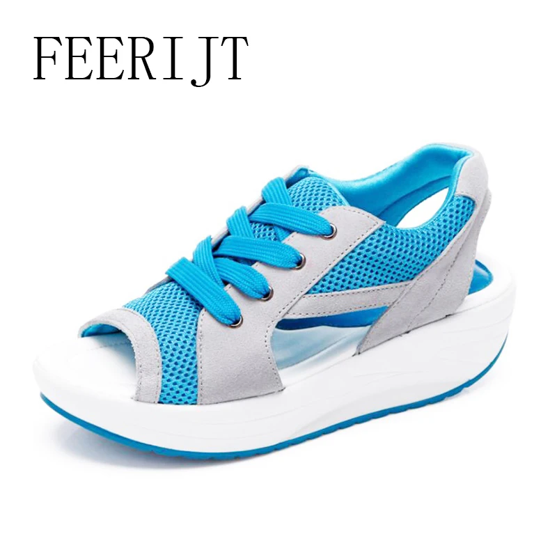 Summer Women Platform Sandals Casual Wedges Heels Ladies Open Toe Platform Lace Up Patchwork Woman Shoes 029